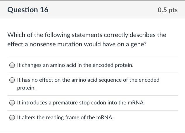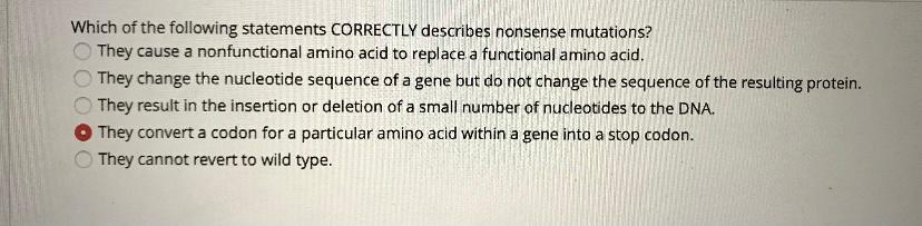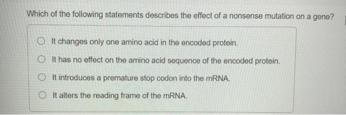 Which Of The Following Statements Correctly Describes The Effect A Nonsense Mutation Would Have On A Brainly Com